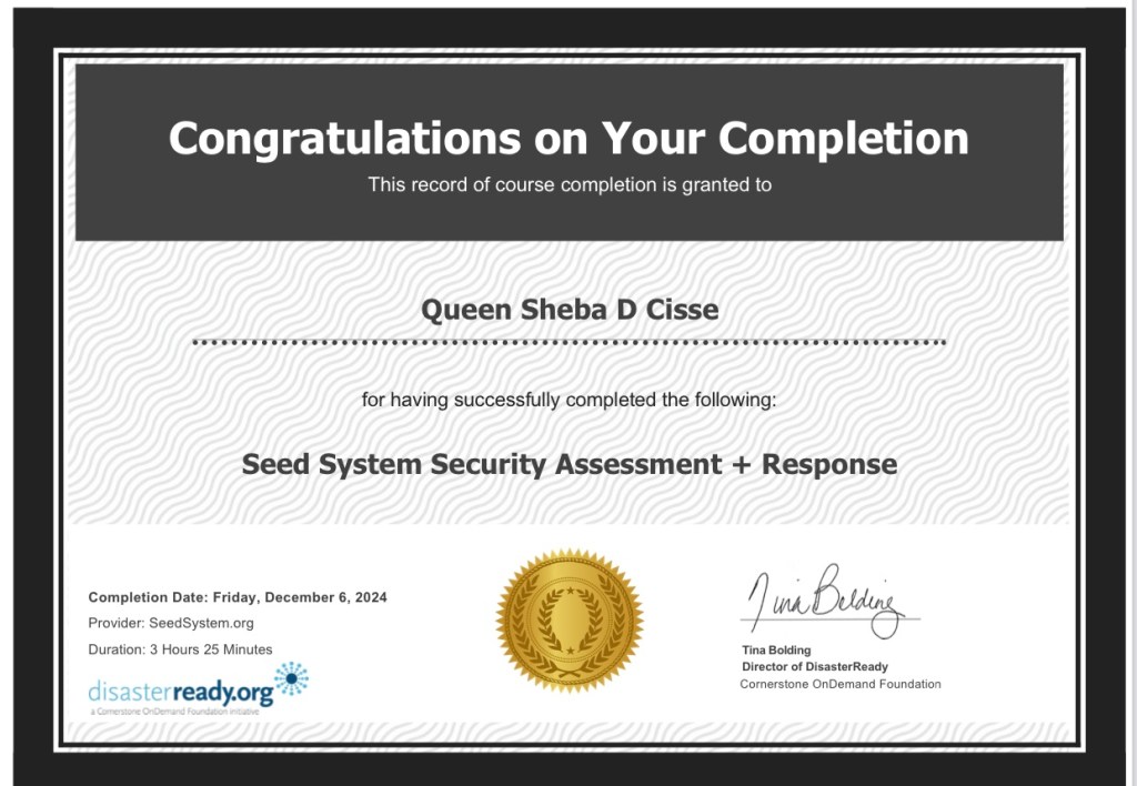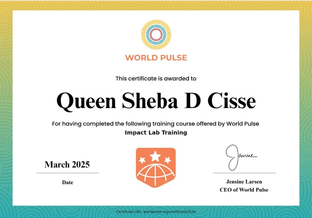 Queen Sheba D Cisse – Change Agent , livelihood, WASH Award – *The On Demand Cornerstone Initiative.