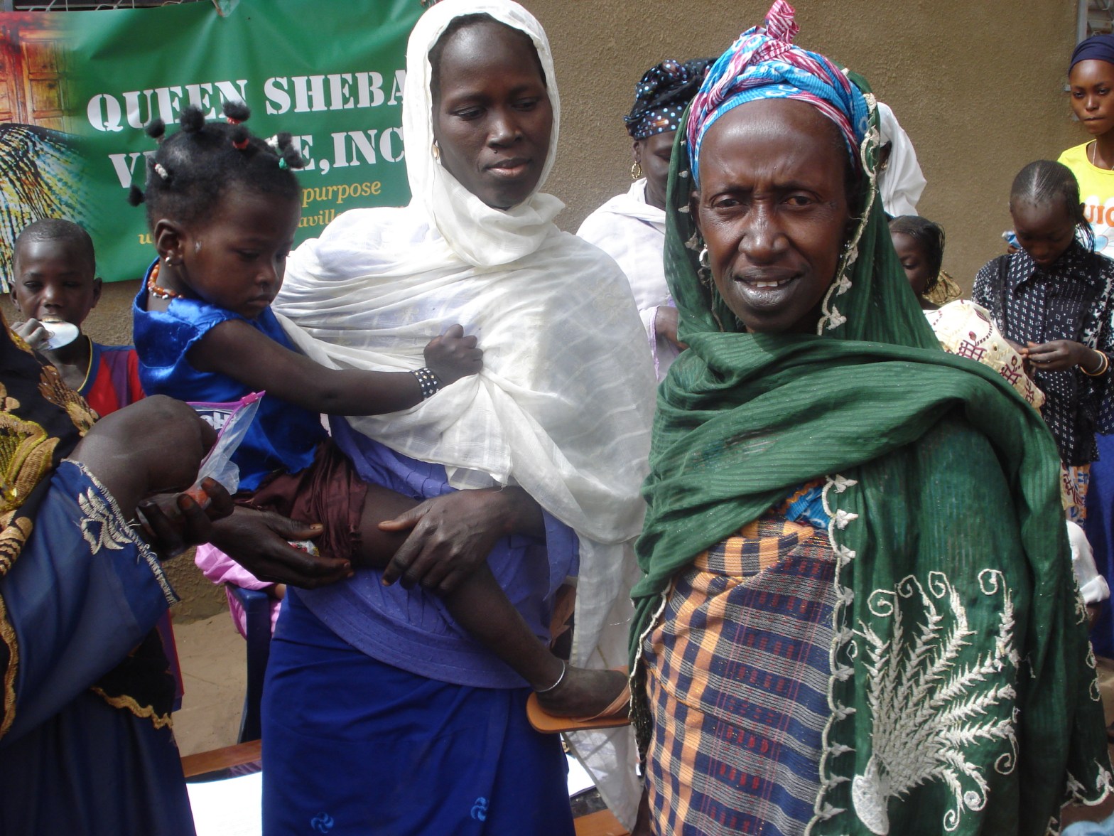 Queen Sheba Village 2012,onward: Health/hygiene Event Kaolack, Senegal – QSV Volunteers contributed totaling 1,400 Hygienic/health kits to women and children and distributed 2000 educational pamphlets. Distribution of health supplies are basic oral hygiene supplies , tooth brushes, floss, tooth paste, bath soaps, hand soaps, shampoos, body washes, hand sanitizers, toiletries including sanitary pads, baby wipes, infant pampers, etc.