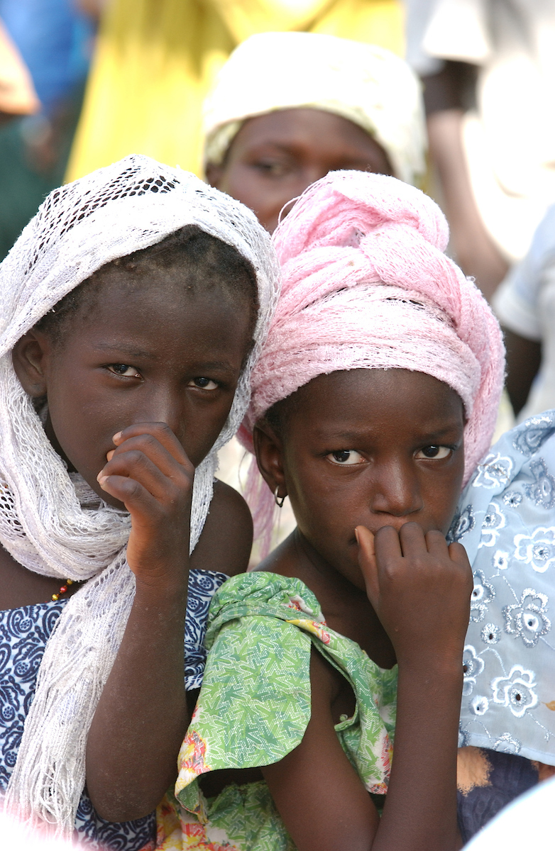 DIOSSONG, SENEGAL. Senegalese Muslim girls watching a reception for visiting dignitaries in Diossong, Senegal on Tuesday, October 31, 2006. © Chet Gordon/ THE IMAGE WORKS