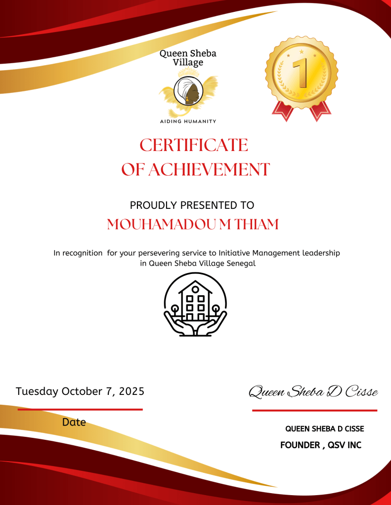 Al hamdulilah, I am Co-Founder of QSV International and am grateful to have served together with my Mum Sayidah Queen Sheba Cisse. I often fulfill many roles and I am happy that the tasks equally advanced my skills over the twenty plus years to aide the neglected communities in Senegal. Allahu Akbar, QSV missionary vision is a benediction of the great saint Shaykh Imam Hassane Cisse, (RA). I am honored and very grateful.